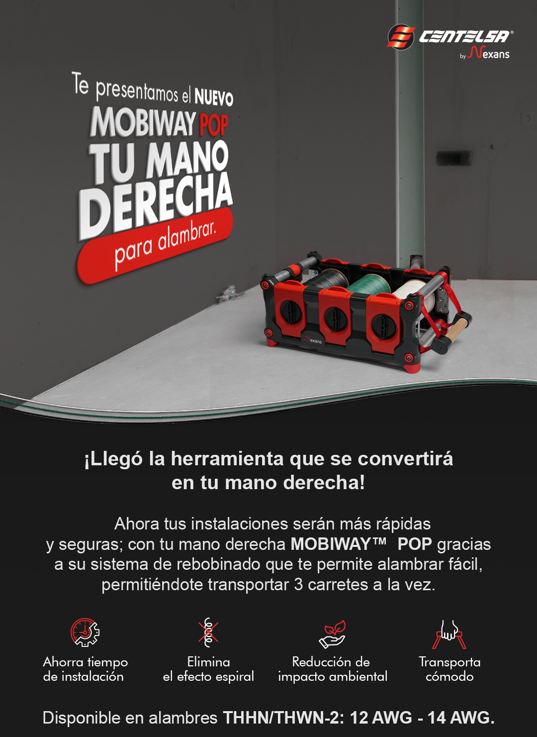 A patented, reusable system that combines a tool and a new packaging presentation for wires of 100m on WIRES THHN/ THWN-2 gauges: 12 AWG y 14 AWG.