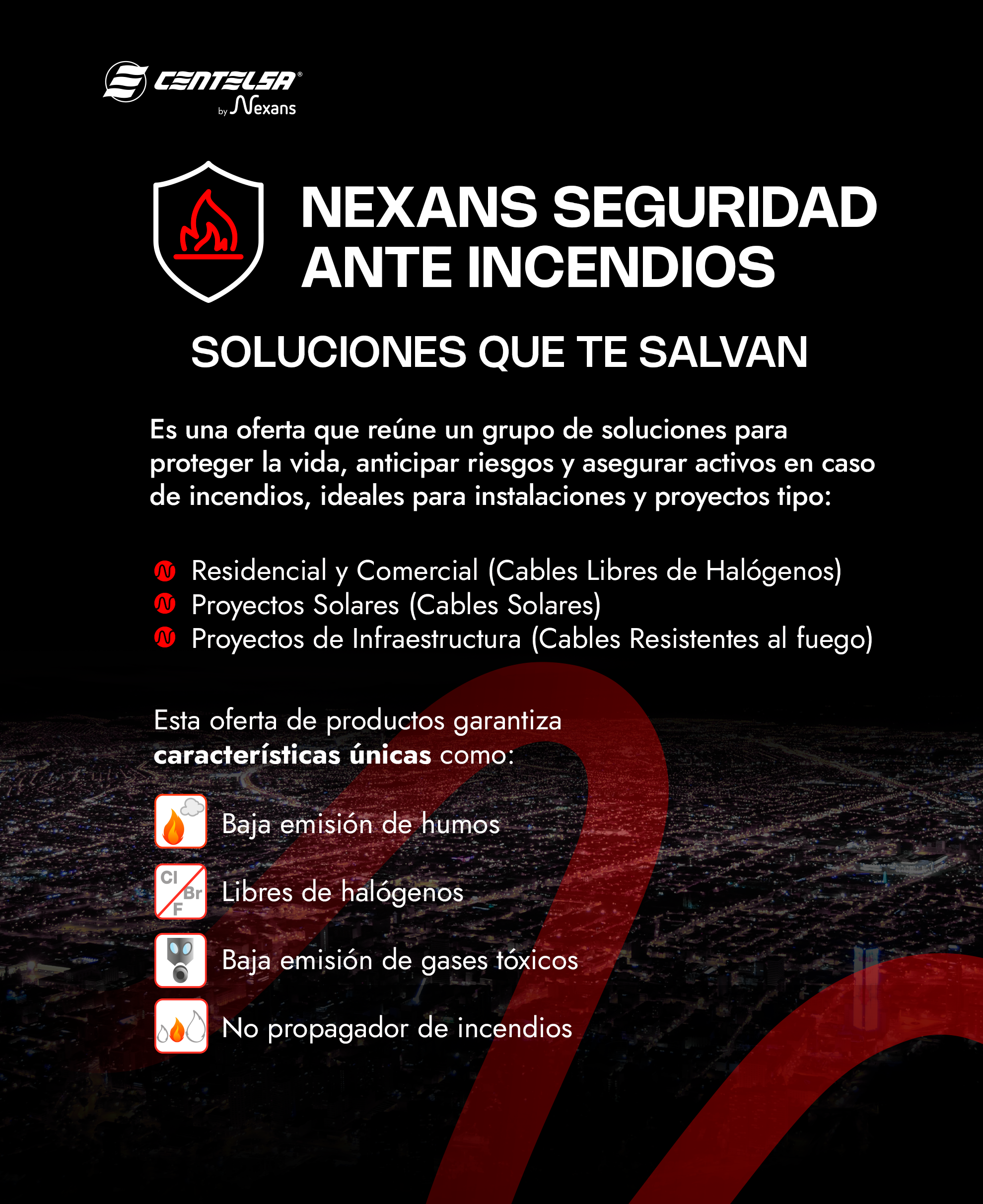Centelsa by Nexans Free-Halogen cables are part of the Nexans Fire Safety offer that allows you to protect people's lives, anticipate risks and secure assets in the event of fires.